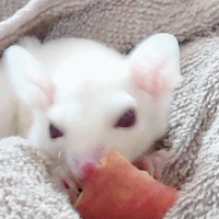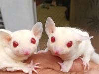 | 白化病是缺乏色素沉著的滑翔機。他們有一個整體白色的身體,非常微弱或沒有標記,並且有紅色的眼睛。這是糖滑翔機中非常罕見的顏色,基因型本質上是隱性 |